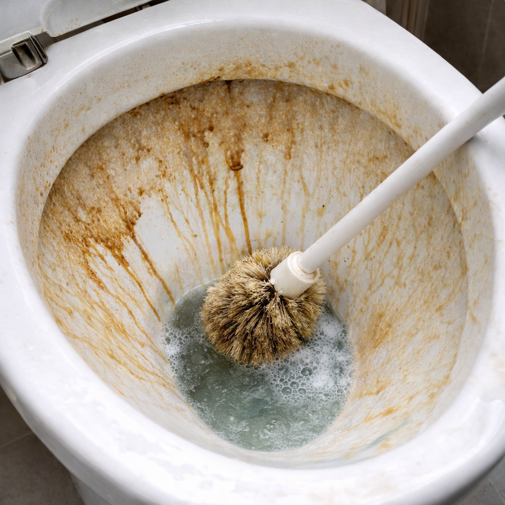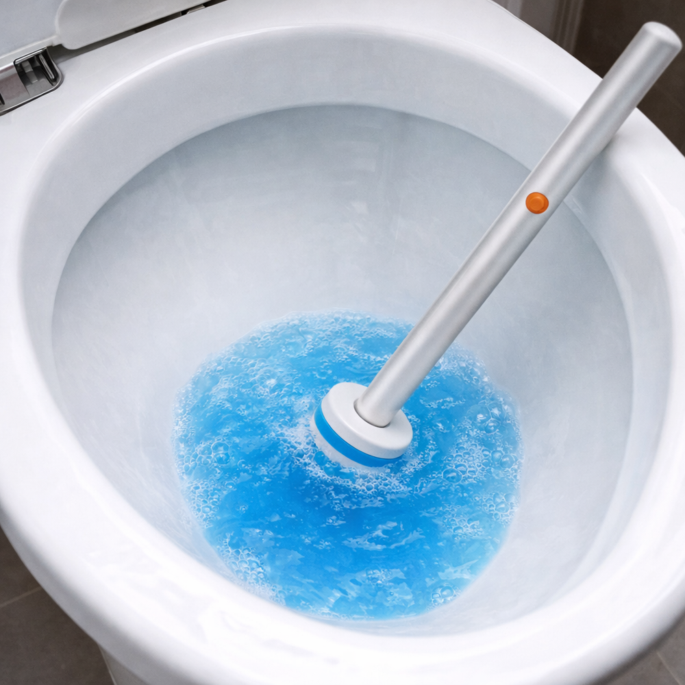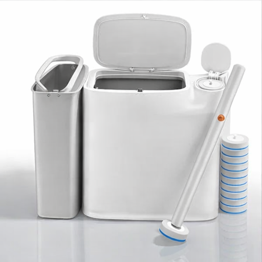 Streamline your bathroom routine with an all-in-one design that combines a sleek wastebasket with a hygienic, hidden toilet cleaning system.